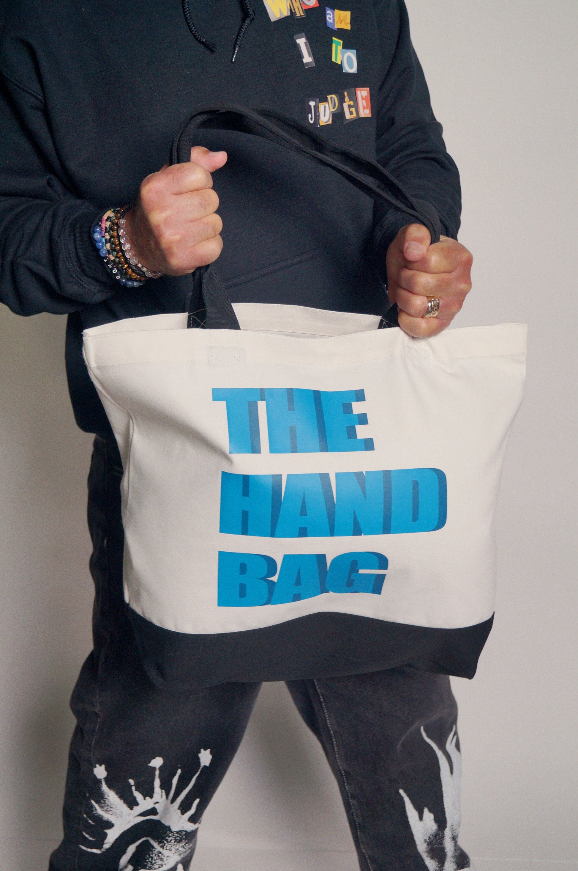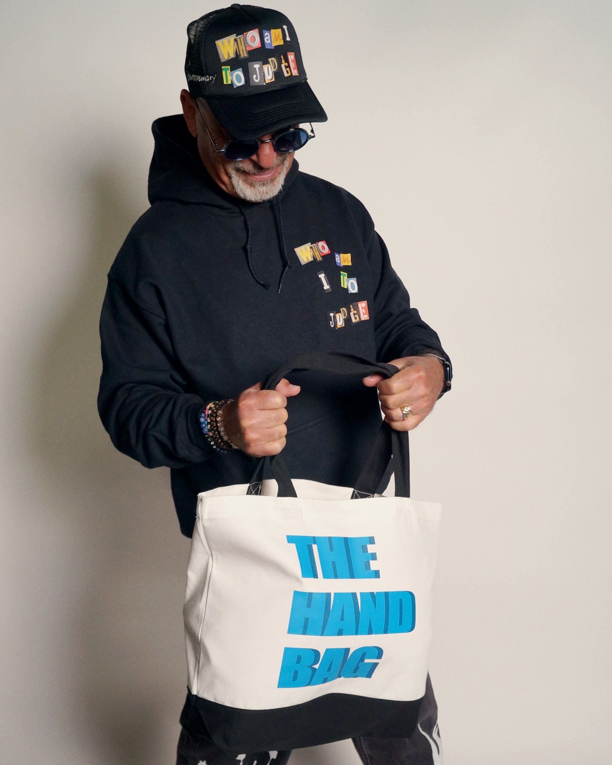 The Official CANTSTOPGOODBOY® for Howie Mandel “The Hand Bag" Tote is now available in limited quantities in Off-White/Black. It's a classic tote bag measuring 18.5"L x 4.72"W x 15"H