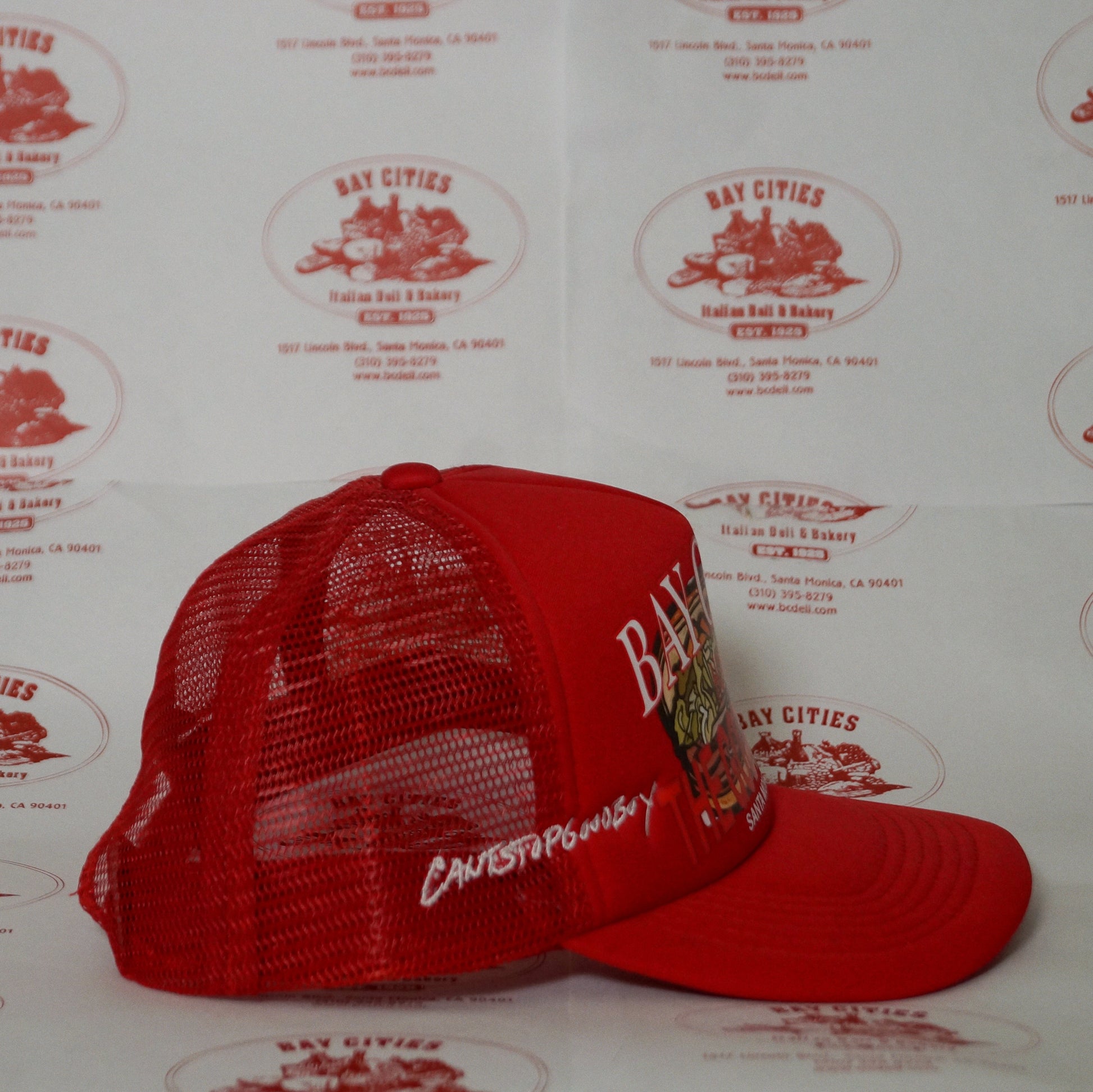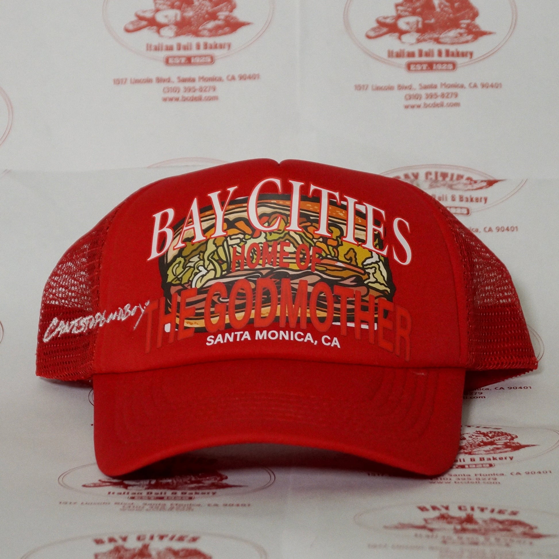 The Official CANTSTOPGOODBOY® for Bay Cities “The Godmother '100-year' ” Trucker (Red-Edition) is now available 100 pieces online. It's a classic trucker style hat made from a poly/nylon blend, and fastened by plastic snap closure.